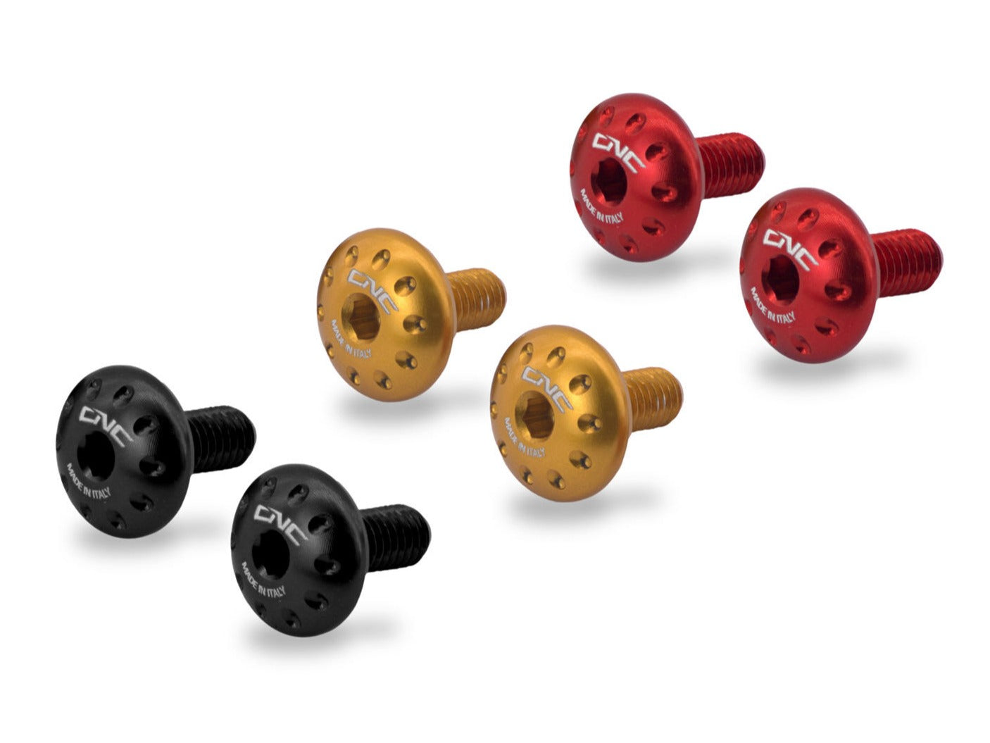 Made in light alloy, machined from solid and then anodized. The kit consists of two screws.