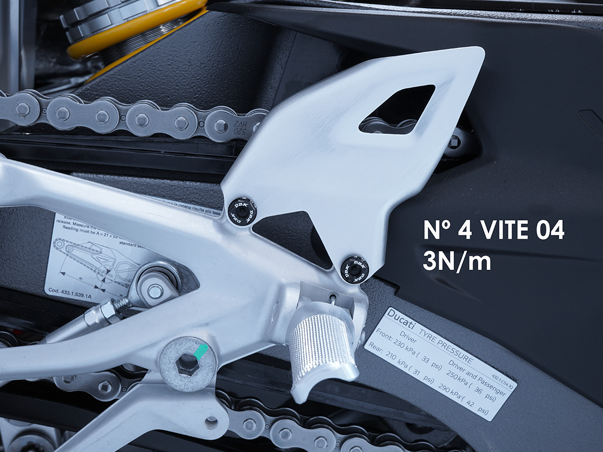 Kit of screws made from solid aluminum alloy (Ergal 7075) through high-precision CNC machining. The screws undergo a colored anodized surface treatment that enhances corrosion and wear resistance, while also providing a sleek and customized look. This kit offers a combination of lightness, durability, and style for your motorcycle, ensuring high performance and a distinctive appearance.