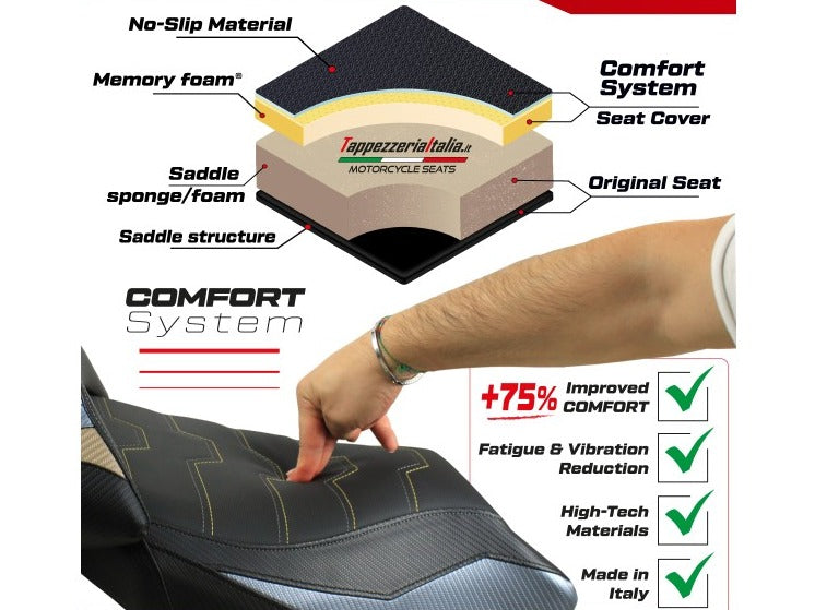 Ultragrip comfort seat cover for Moto Morini X-Cape 650-700 (2021+) by Tappezzeria Italia.